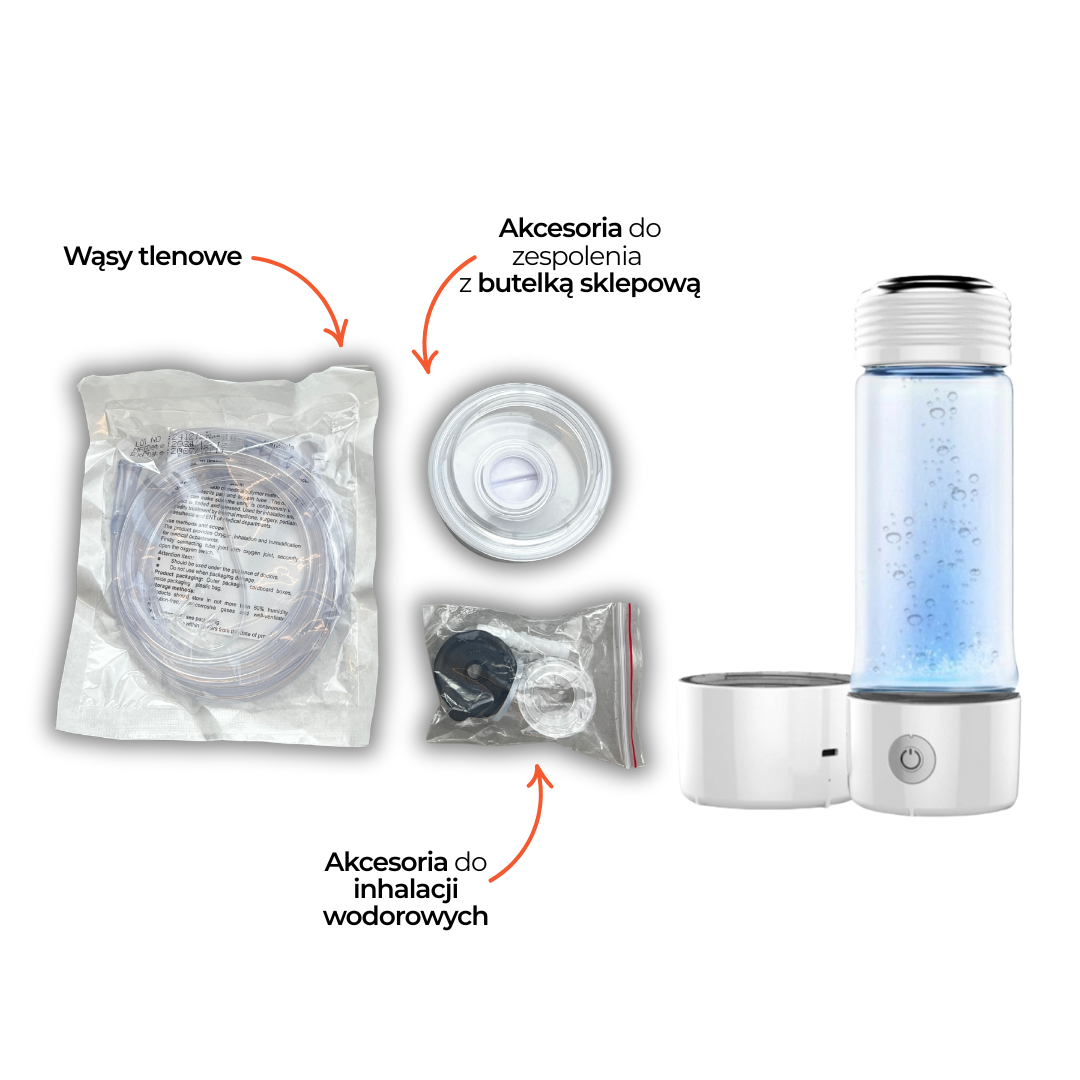 Możliwość inhalacji wodorem molekularnym za pomocą butelki;
