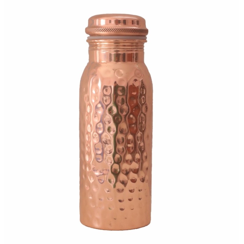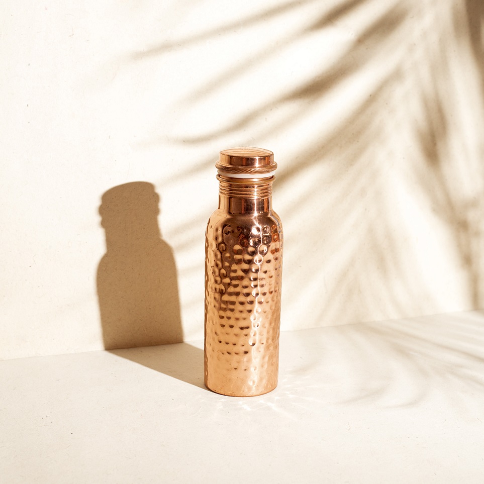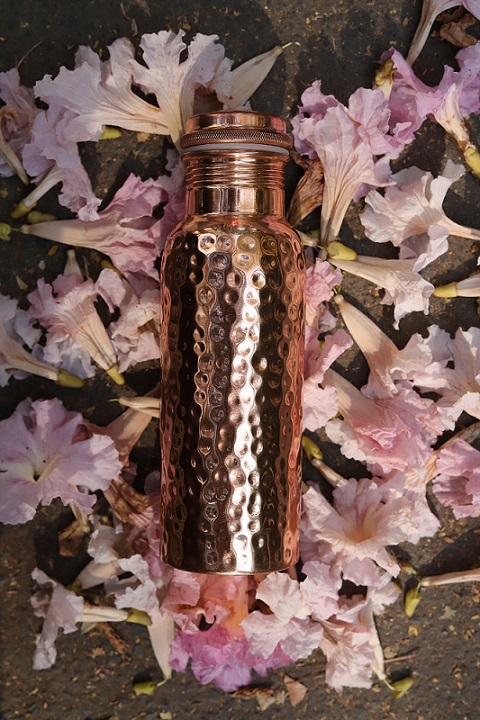 Ta butelka to o wiele więcej niż zwykła, stara plastikowa lub stalowa butelka! Przechowywanie wody w butelce przez noc przekształca ją we wzbogaconą w miedź Tamre Jal (miedziana woda), dzięki czemu jest ona naturalnie zasadowa. Wiadomo, że ta miedziana woda przywraca równowagę wszystkim trzem doszom, czyli energiom w ciele (vata, pitta i kapha).